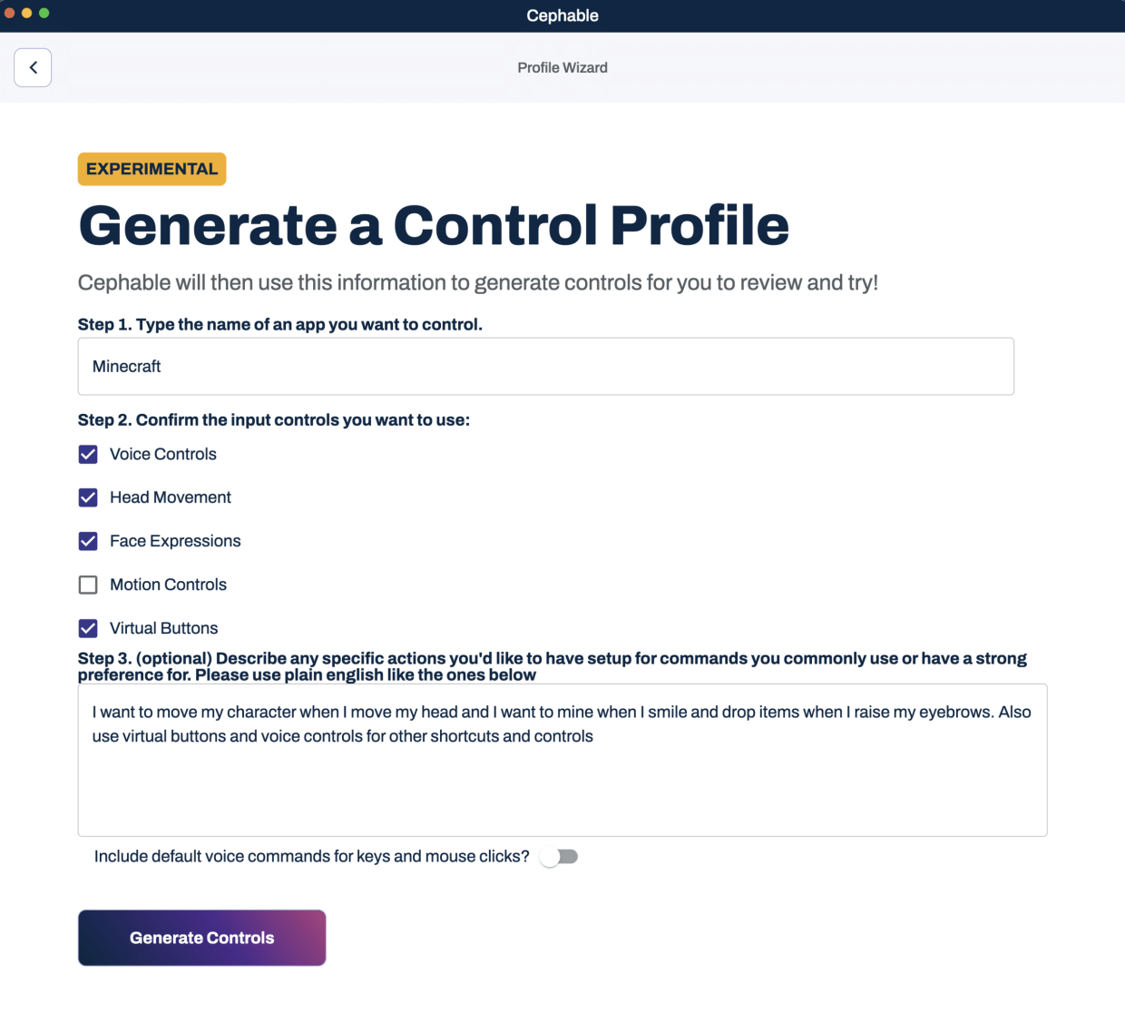 Cephable also comes with a powerful AI that lets you automatically generate controls and profiles for different games by describing how you want to play.