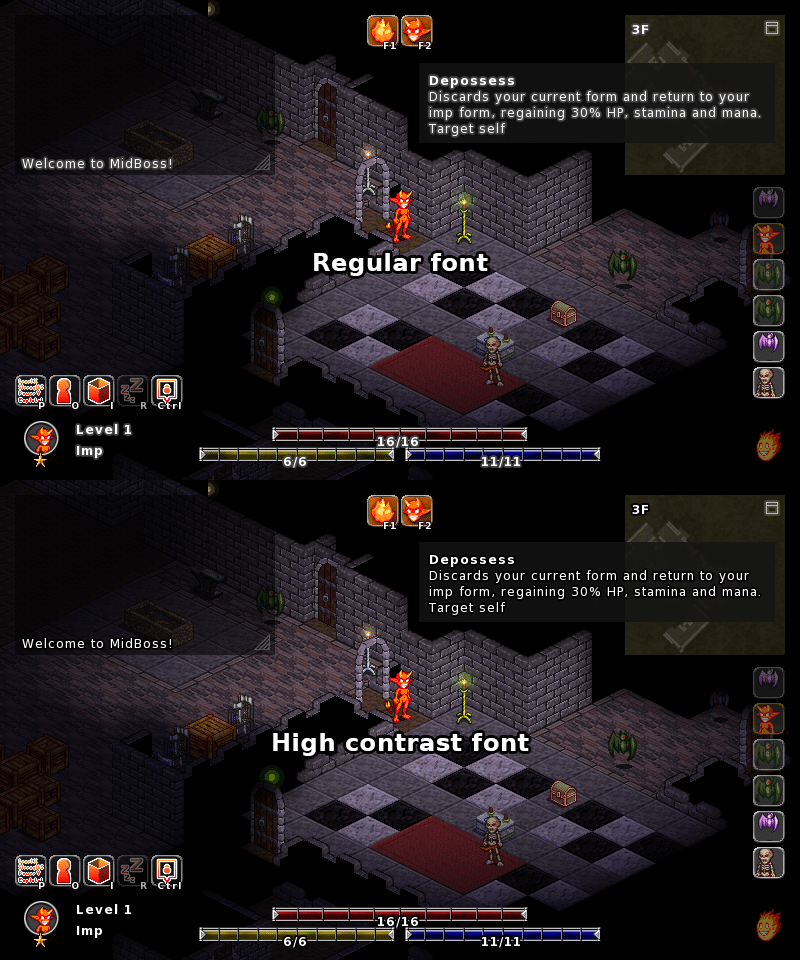 Making a high contrast font was as easy as changing the levels on the existing fonts and adding the option, and has made a lot of people who play the game happier.